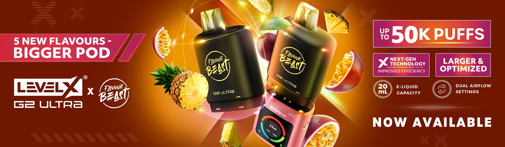 Compatible pods for RELX, STLTH, and Flavour Beast systems in top-selling flavours.